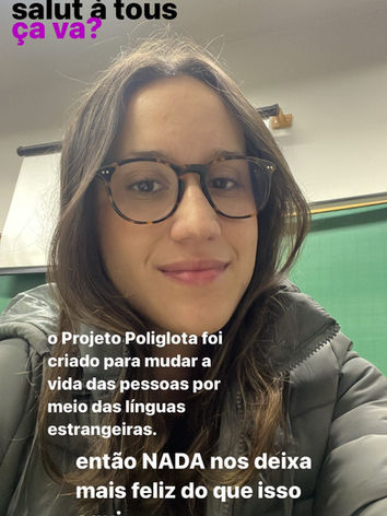 Além disso, Gabriela é a criadora do Chat Masters Club, o clube de conversação do Projeto Poliglota, que oferece aos alunos um espaço interativo para desenvolver confiança e fluência por meio da prática real em diferentes idiomas.